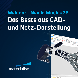 Dürfen wir vorstellen: das Beste aus CAD- und Netz-Darstellung in Magics 26. Ganz gleich, welche 3D-Drucktechnologie Sie verwenden, Magics bietet Ihnen den branchenführenden Workflow für die Daten- und Bauvorbereitung. Unsere Software-Experten zeigen Ihnen in diesem Webinar am 02.06.2022, um 14:00 Uhr, wie Sie die neuesten Updates optimal nutzen können. |